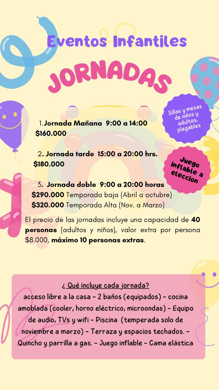Precio: $290.000 (temporada baja), $320.000 (temporada alta de noviembre a marzo)
